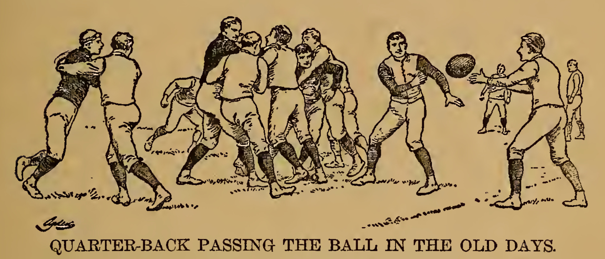 The version of rugby played in the 1870s and 1880s involved scrums in which the two teams pushed one another and tried kicking the ball through the other team’s line in the scrum. It did not encourage heeling the ball behind the scrum, picking it up, and running with it, but the latter was the style of play preferred by Americans. So, when we established the system of possession and downs in 1882, that brought the controlled scrimmage in which one team heeled the ball back to a teammate who picked up the ball and lateraled it to a teammate who ran with it.
