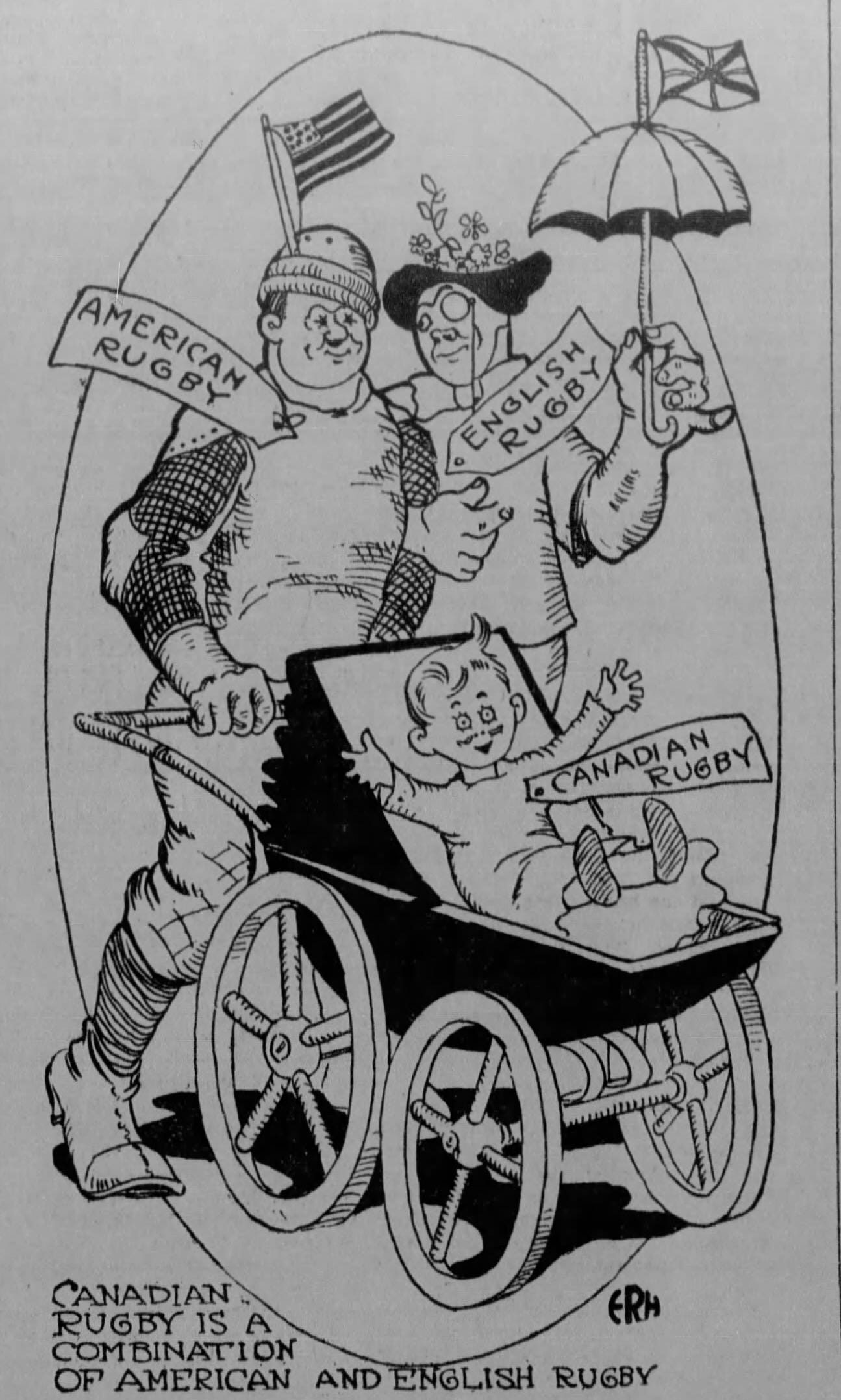 In the mid-1910s, Canadian rugby combined elements of American football and English rugby. Since it did not yet allow blocking or the forward pass, rugby style laterals were a primary means of advancing the ball on the ground.
