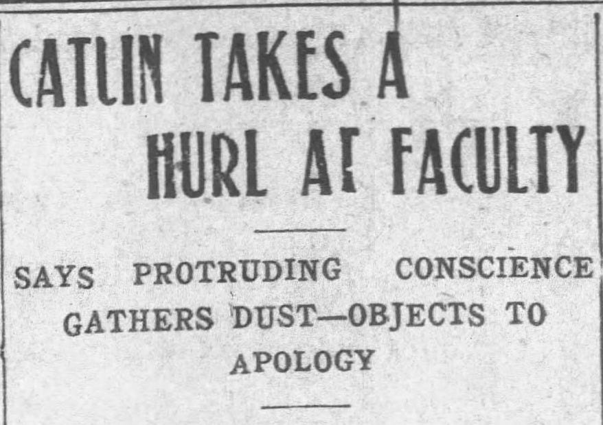 Blaming each team member for the cotton-towel-picking hands of a few did not sit right with coach Mark Catlin. Catlin, who played at Chicago and is best known for tackling a Michigan player for a safety in their 1905 victory over the Wolverines, let the faculty know exactly how he felt during the next weekly chapel.