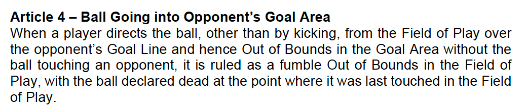 In addition, the presence of the single may have affected their rule on fumbles that enter and exit the end zone, which is likely a rule that complaining Americans would embrace. Here's the rule from the CFL's 2023 rule book.
