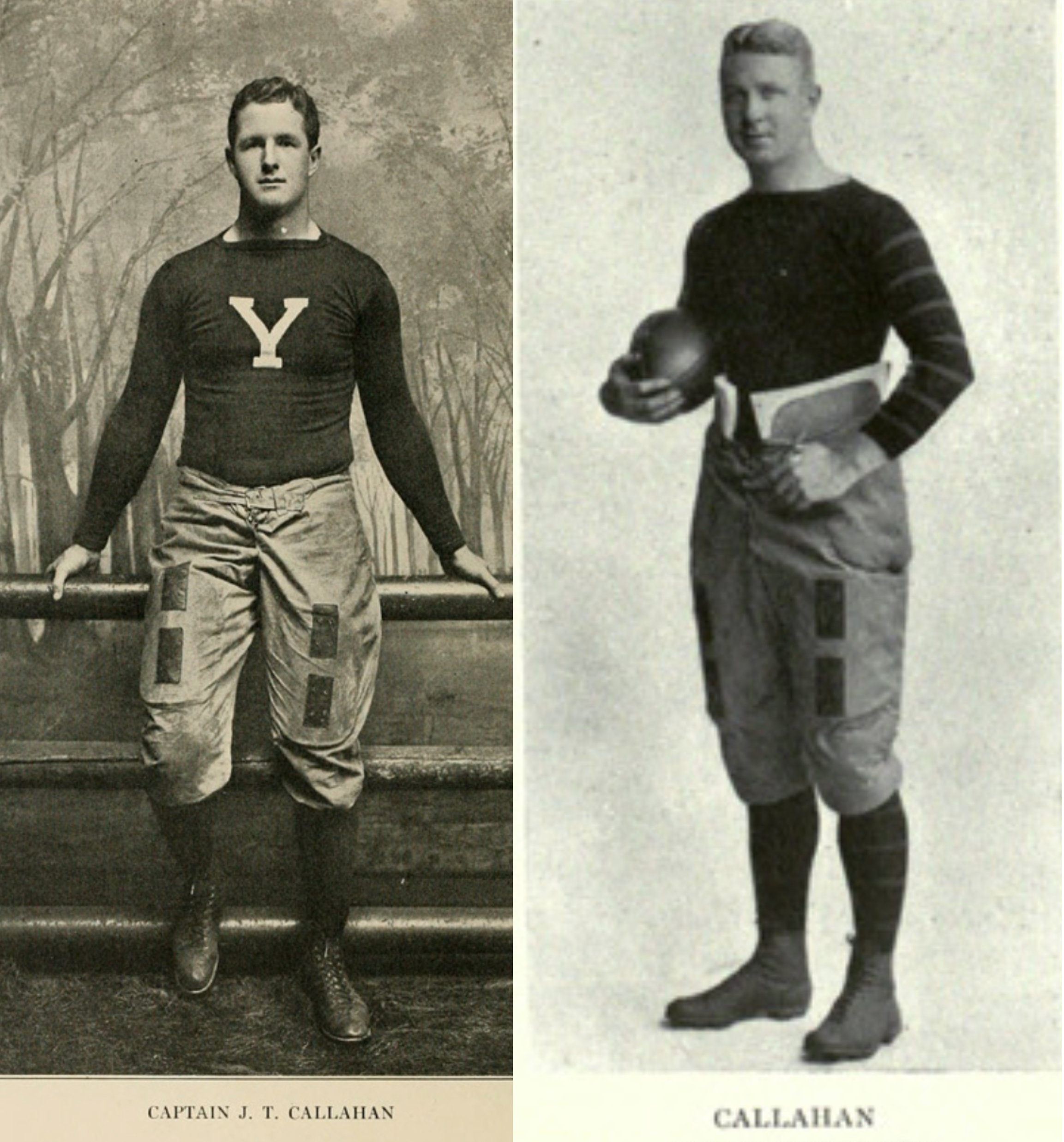 Of course, their matchup as captains and centers, running into one another every play, should not have happened because John Timothy "Tim" Callahan was two years older than Harry A. "Mike" Callahan, but the events of 1917 set a path toward their 1920 meeting. After starting at center as a sophomore in 1916, Tim volunteered for the Navy shortly after America entered WWI in 1917. With the Navy, he earned first-team honors on Walter Camp's All-Service football team and his aviator wings before serving as a pilot in South America. He returned to Yale in 1919 to become the second junior class member elected by the football team as its captain. (The first was Frank Hinkey, a four-time All-American from 1891 to 1894.)