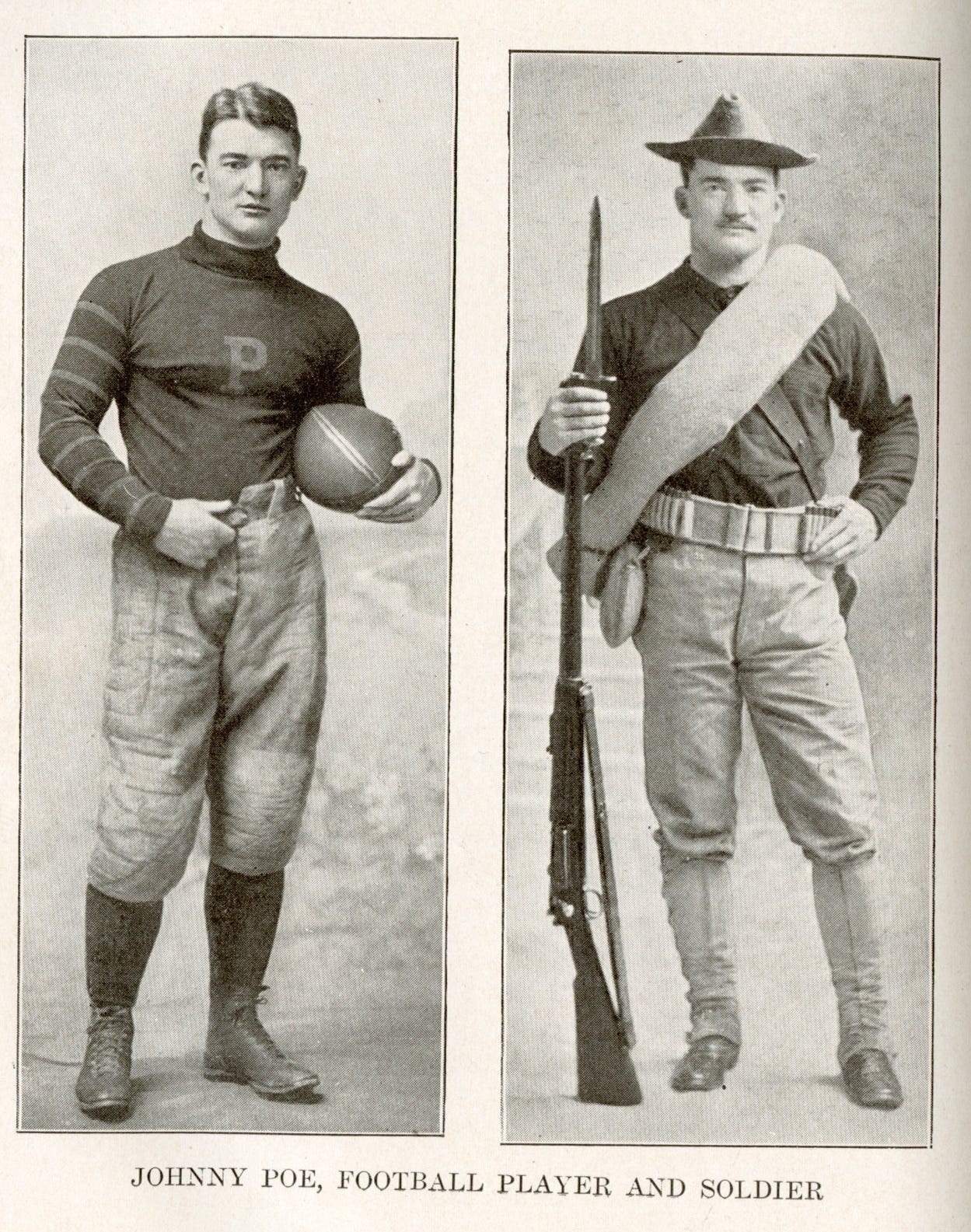 As the third of the Poes to play for Princeton, Johnny was a varsity running back as a freshman and sophomore in 1891 and 1892, finishing third and second on the team in touchdowns scored those years. However, he struggled academically and left school after several semesters.